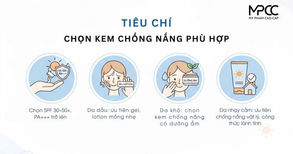 - Da nhạy cảm: ưu tiên kem chống nắng vật lý hoặc công thức lành tính