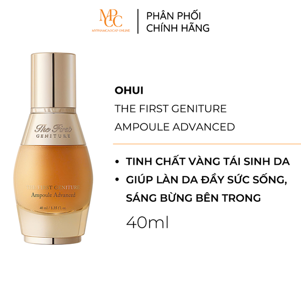 - Ohui The First Geniture Ampoule Advance: Tinh chất vàng 24K tái sinh làn tăng đàn hồi, giảm nếp nhăn và vết thâm, chống lão hóa